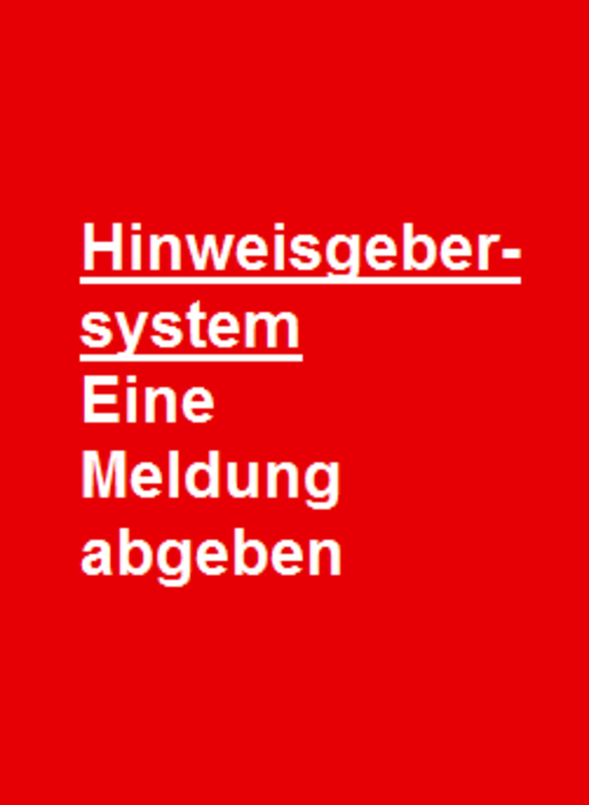 Bitte beachten Sie, dass unser Hinweisgeber-System nur für die Meldung von Verstößen gemäß §2 HinSchG konzipiert ist. Es handelt sich dabei insbesondere, aber nicht ausschließlich, um Straftaten oder Ordnungswidrigkeiten, sofern letztere dem Schutz von Leben, Leib oder Gesundheit oder dem Schutz der Rechte von Beschäftigten oder ihrer Vertretungsorgane dienen.